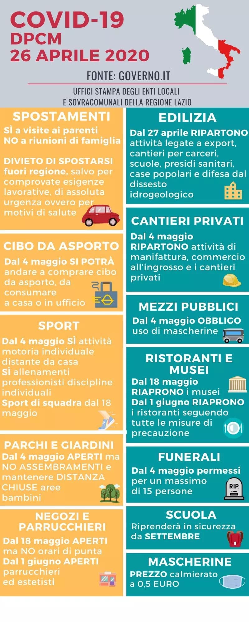 Covid-19: Decreto del Presidente del Consiglio del 26 aprile 2020